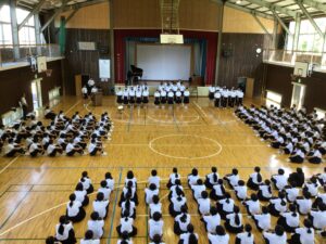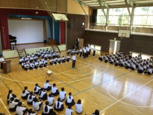 1校時に行われた全校集会では、校長先生から「決して失敗しないのは何事もなさない人である」と学校行事がたくさんあるⅡ期に向けて生徒を励ますお話がありました。