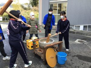 1月10日(土)に伝統文化に親しむ参観日を行いました。 1年生は島田人形浄瑠璃、2年生は光紙芝居とかるた、3年生は必勝合格餅つきを地域の方を講師としてお招きし、実施しました。 また、柔剣道場には書き初めも展示され、保護者 …