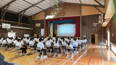 中学3年生を対象とした光市『未来のパパママ応援事業』の第1回目となる『いのちの授業』がありました。今日は産婦人科医を講師にあらかじめ録画された講義を体育館で視聴しました。生命の誕生や胎児の成長、妊娠、中絶といった様々なお話があり、生命の神秘や人間の性について学びました。50分にわたる講義終了後、生徒は「自分の体のことだけでなくパートナーの体のこともしっかりと理解することが大切だと思いました。」「これまで性の話といえばあいまいだったけど、ストレートでわかりやすかったです。」「生まれたことに感謝したくなりました。」などの感想を述べていました。