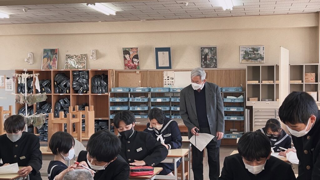 11月10日(木)6校時『学びの総合』がありました。希望生徒が各学年の教室に分かれて問題プリントに取り組みました。地域のサポーターの方々や学校の先生に質問したり、教えていただいたりしました。定期的に行うこの時間に毎回サポーターの先生方が来校し優しく指導してくださり、生徒たちのやる気を喚起していただいています。
