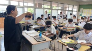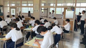 6月16日(金)島田川学園推進委員会の第1回小中一貫教育推進部会が行われました。島田中学校区内の小中学校教員が一堂に会し、5校時には小学校の連絡部会、6校時には全クラスの授業参観、その後6部会に分かれての分科会を行いました。小学校でお世話になった先生方に授業を参観していただき、生徒たちはやや興奮気味で、とても嬉しそうでした。分科会では今年度の重点目標である『見える学力(学力テストの点数)、見えない学力(見える学力の土台となる基礎的な力)を踏まえた本物の学力の育成』の下、課題解決に向けた活発な意見交換が行われました。