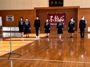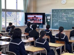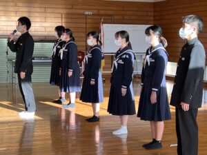 12月1日(金)全校集会がありました。体育館改修工事のため今回はリモートで行いました。はじめに表彰式があり、夏休みに公募した読書感想文や作文、絵画、理科作品など多くの賞状披露がありました。委員会報告では、3年生委員の最後の報告となりました。今月7日には新執行役員が決まります。是非、島田中学校生徒会の良い伝統を引き継いでいってもらいたいと思います。