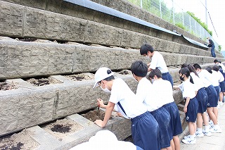 放課後にボランティア活動で、県道沿いの花壇にひまわりを植えるための準備をしました。