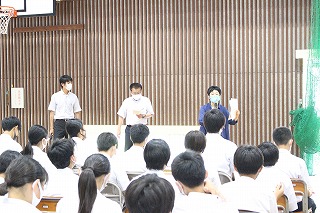 4月9日(木)に対面式が行われました。 生徒会執行部が企画・運営し、新入生に向けて委員会活動について演技やクイズを交えて紹介しました。 「パレット〜君の個性は何色だ?〜」のスローガンをもとに、一人ひとりの個性が輝く、主体 …